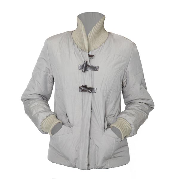Короткая куртка прилегающего силуэта, длиной до бедра. Воротник изделия и манжеты рукавов из трикотажа. Вход в карманы на талии закрыты клапанами. Центральная застёжка-"молния" закрыта планкой, которая фиксируется кнопками, а так же декоративными пуговицами из натуральной кожи. Модель оформлена декоративными элементами из искуственной замши и вышивкой. Внутри карманы для телефона и мелких вещей.